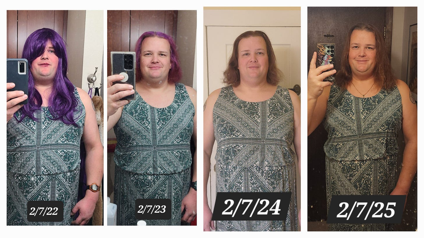 Three years on, I look in the mirror and though I can see the things that still remind me of the old life, there’s so much that I look in the mirror and say “hey pretty girl, doing anything after this?” The further I get into transition, the more I simply can’t go back to that life. Not because of the permanent transformations and the ways my system is compromised and to introduce that much T back into my system would throw me into a highly dysphoric menopause, but because I know what this world is like.